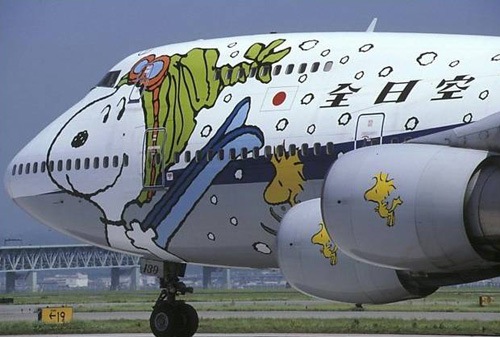 This is not an original idea. Snoopy was often seen in aviation attire (his Red Baron persona), and he went to the moon in Peanuts before Neil Armstrong did in Apollo 11 (there is actually an interesting relationship between Snoopy and space exploration, which can be viewed in more depth here if you are interested). And Japan Air Lines came up with this paint scheme which features Snoopy: