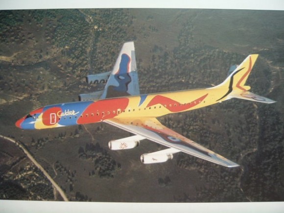 The relationship between visual art and design did not stop with the menus, though. Alexander Calder, for instance, painted several planes for Braniff, stating that such planes “would be flying mobiles.” Who better than Calder ,then? Note how the painting becomes the plane.