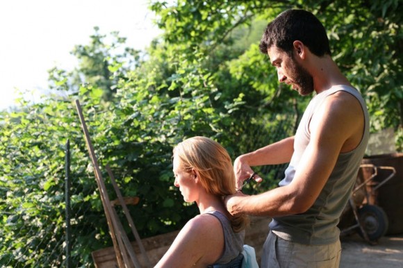 It is only when she ventures to the very un-designed setting of a hillside cottage within an overgrown garden and sits down next to an up-turned wheelbarrow that we see her happy. It is here, with her new lover, that lets passion consume her and then she gets a haircut, an undoubtedly symbollic shedding of her luxury trappings and explosion of her repressed feelings.